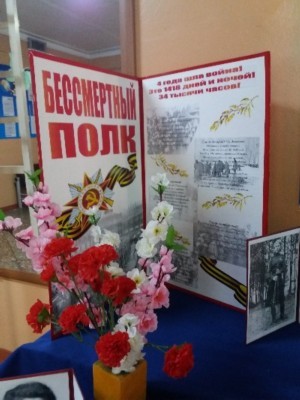 К празднику Великой Победы в холле школе была организована выставка детских рисунков. Учащиеся школы подготовили выставку фотографий участников  Великой Отечественной войны «Бессмертный полк».