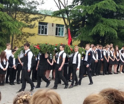 Состоялась торжественная линейка, посвященная 72-летию Великой Победы. На линейке по традиции  выпускники передали десятиклассникам праздничные ленточки «Сирени  45-го года», Лучшие учащиеся 10 «А» класса возложили  гирлянду  к памятнику погибшим  морякам. Торжественное мероприятие закончилось классными часами, которые были проведены в музеях, у памятников  героям войны, в кинотеатрах, в классных комнатах.