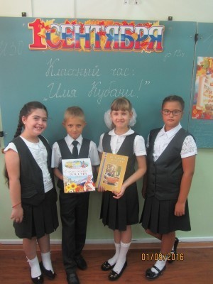 Во всех классах школы после торжественной линейки прошёл Единый Всекубанский  классный час «Имя Кубани». В ходе классных часов учащиеся 1-11 классов познакомились с выдающимися личностями Краснодарского края, читали стихи кубанских поэтов, слушали музыкальные произведения, рассказывали о людях, прославивших свой родной край.